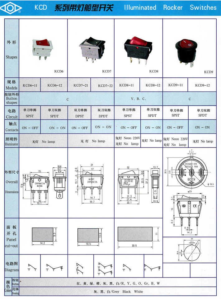 • KCD6/7/8/9系列帶燈船型開關(guān) 產(chǎn)品型號(hào):KCD系列帶燈船型開關(guān)