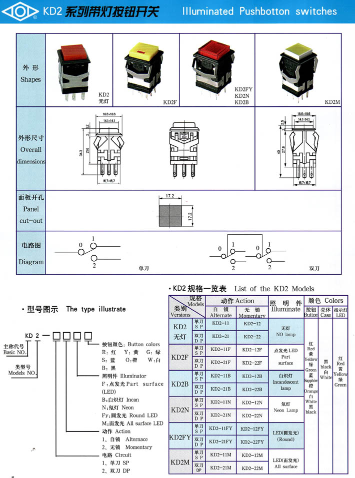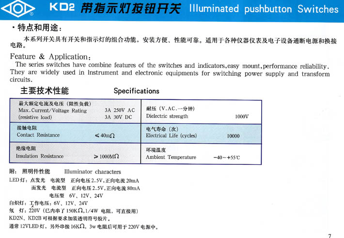 • KD2系列帶燈按鈕開關 產品型號:KD2系列帶燈按鈕開關