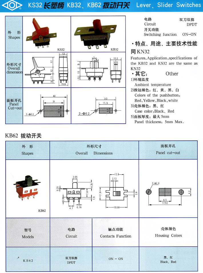 • KS32/KB32/KB62拔動(dòng)開關(guān)系列 產(chǎn)品型號(hào):KB62